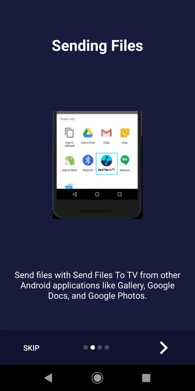 Это лучшее решение, чтобы избавиться от лишних проводов и сложных настроек. Вместо этого установите приложение «Отправить файлы на телевизор» на свой смартфон и надежно передавайте ваши любимые мультимедийные файлы, включая фотографии, видео и т. д., на ваш Android TV, ваш ПК и даже на другое устройство Android. Оно использует локальную сеть Wi-Fi, которая обеспечивает эффективное соединение для вашей домашней экосистемы без необходимости использования какого-либо внешнего оборудования.